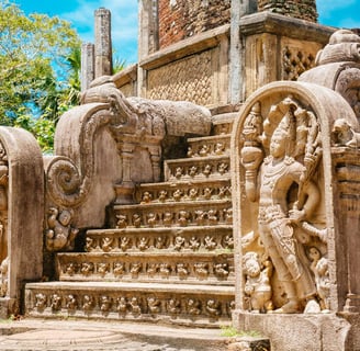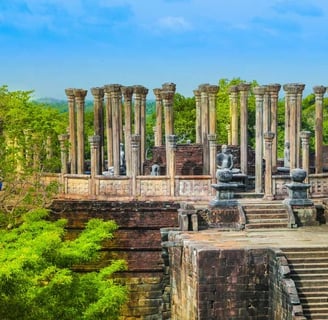Keliausite į Polonaruvą – geriausiai išlikusią Šri Lankos viduramžių sostinę - UNESCO objektas. Apžiūrėsite karalių rūmus, citadelę ir garsųjį Gal Viharos ansamblį. Čia uolose išskaptuotos trys didžiulės Budos statulos – sėdinti, stovinti ir 14 m ilgio gulinti. Šie akmeniniai šedevrai mena XI–XII a. ir budizmo istoriją.