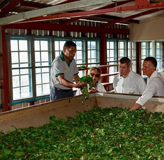 Aplankysite Ceilono arbatos fabriką, kur galėsite stebėti arbatžolių perdirbimo procesą ir paragauti garsiosios arbatos. Šri Lankos arbata – sala simbolis, konkuruojantis su kitomis žymiausiomis arbatomis pasaulyje. XIX a. atvežtos arbatžolės ir auginamos Peradenijos soduose. Škotas J. Tayloras pradėjo arbatos verslą, o šiandien Šri Lanka yra viena didžiausių arbatos eksportuotojų. Išgirsime vietinių pasakojimus apie arbatos subtilybes ir sužinosime, kodėl ji yra tokia mėgiama. Keliaudami į Nuvara Eliją, mėgausitės vaizdais, kurie atsivers per autobuso langą – kalnai, upės ir kriokliai. Miestas, esantis prie aukščiausio Šri Lankos kalno, vadinamas „Mažąja Anglija“